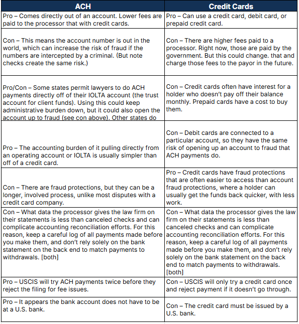 Plan now to ensure your payment method will be accepted when filing with USCIS. Electronic payment readiness will help prevent unnecessary delays, rejections, or missed deadlines. If any part of your payment process is unclear, address those questions ahead of time to avoid complications.